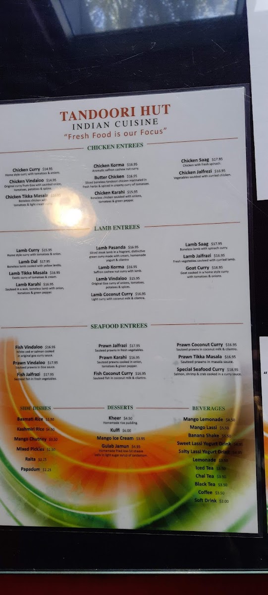 Tandoori Hut Menu